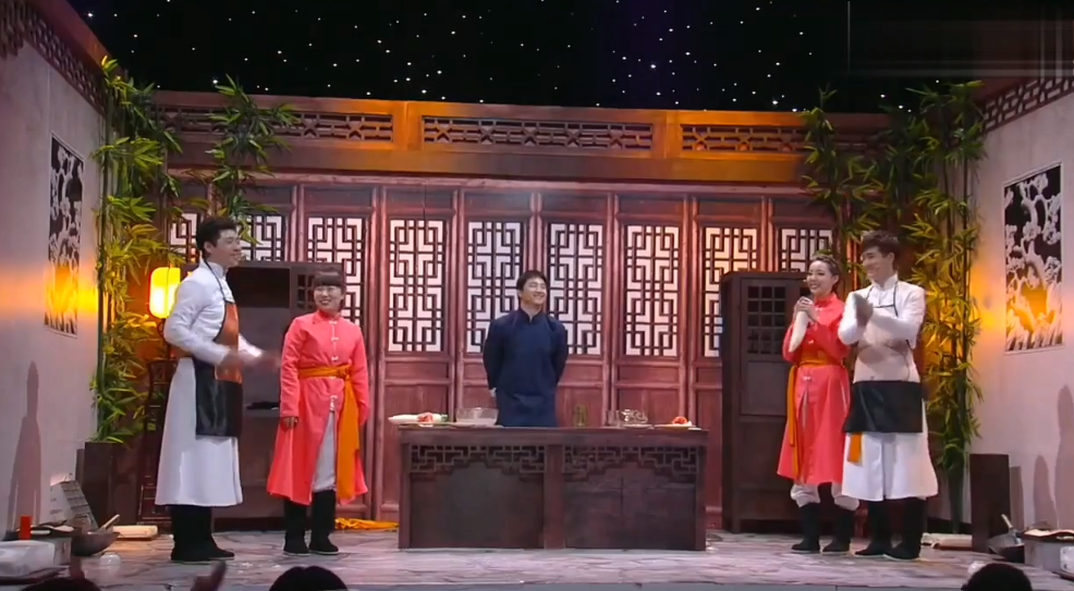 成了獨立的節目後,演員不再從身後出場,而是有了一個小型的舞台。這也算是後來很多國產室內佈景喜劇節目的鼻祖了。