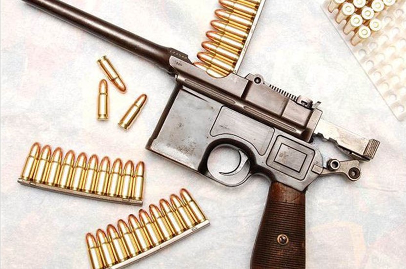 第二種是7.63x25mm手槍彈,這也是一種毛瑟彈,這是駁殼槍使用的子彈,連隊幹部都使用駁殼槍。這種子彈可以和我們後期的54式手槍子彈互換使用,我用54手槍打過德國原裝的子彈,勁很足。那時我們的手槍彈也是銅殼的,可同幾十年前德國的工藝比還是有些差距。