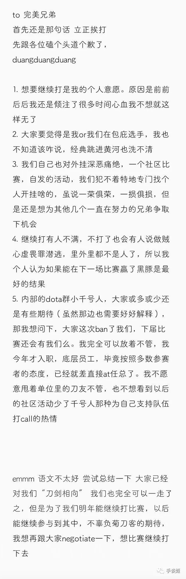 希望這名玩家能好好反省,其他隊伍也能引以為戒,發生這種事情,大家都挺沒面子的。