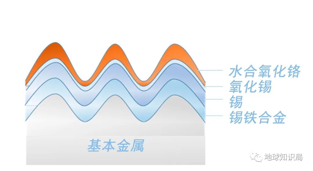 馬口鐵皮含有5層,最內層是錫鐵合金。對於一些蛋白質含量高、酸度和色素高的原料,會在接觸食物側再塗一層有機化合物。