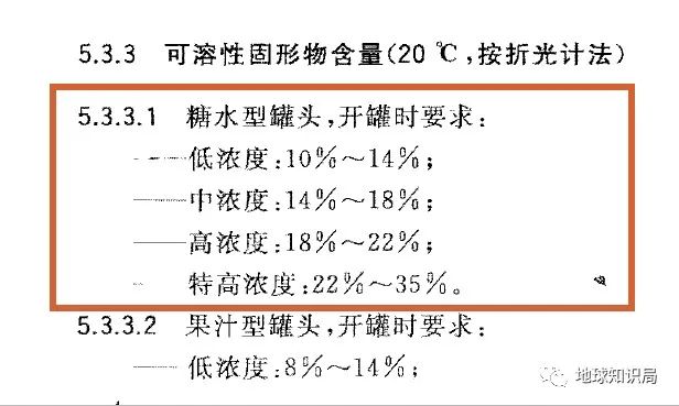 黃桃罐頭屬於糖水型罐頭,根據國家標準《GB/T 13516-2014 桃罐頭》規定,糖水型桃罐頭開罐時的糖水濃度分為低濃度(10%~14%)、中濃度(14%~18%)、高濃度(18%~22%)和特高濃度(22%~35%)。