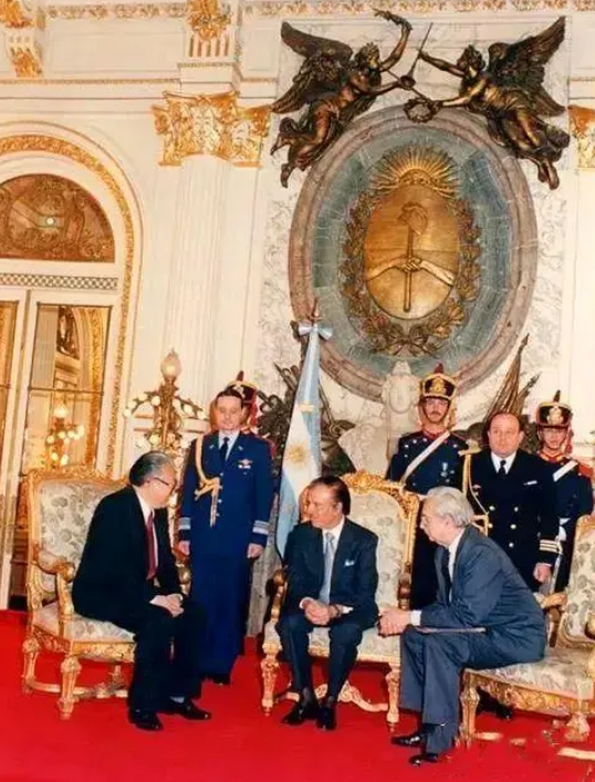 完成了遞交國書的這些程式以後,梅內姆總統邀請我入坐,同我進行親切交談,其他外交官則退到大廳門口等待。