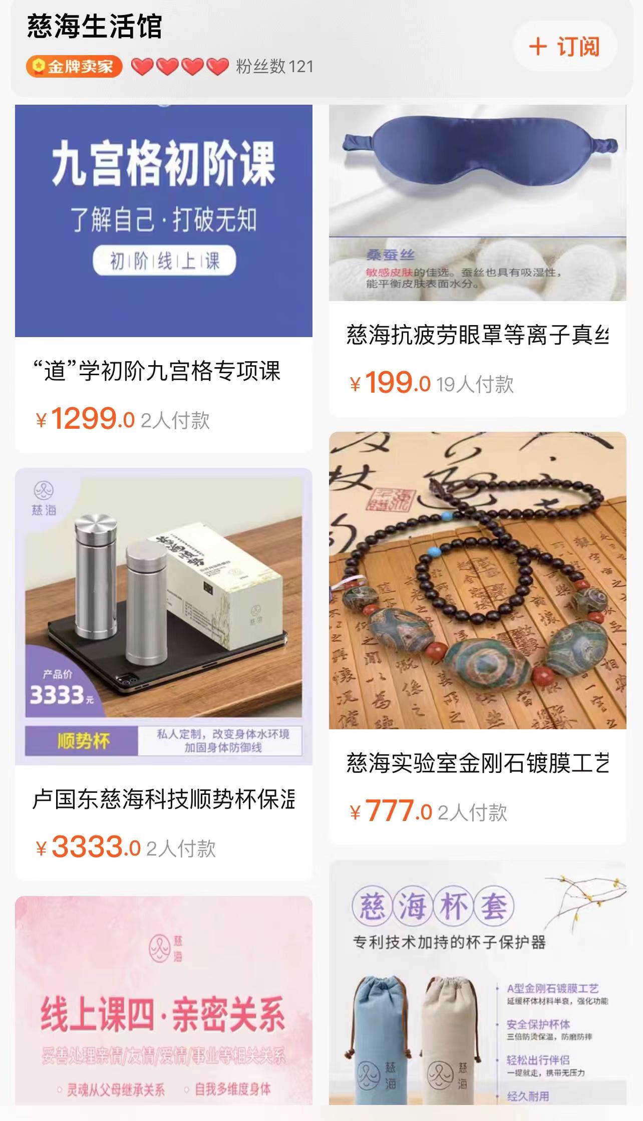 到底是何方神聖,能研發出這樣利國利民的重大科技成果呢?進入商品店鋪發現,該店鋪所售商品,有辟穀杯、健康水杯、男士護腰磁片,磁科技老花眼罩,還有一些培訓班,比如磁科技入門、磁科技護眼等等。產品繁雜,價格高昂。大致概括一下,都是智商税。