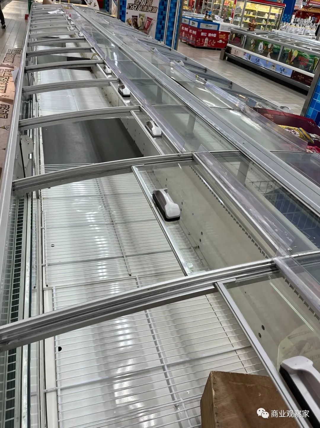《商業觀察家》週二晚間看了曾經拿下過家樂福節前銷售全國第一的店王店——北京雙井店,冷凍貨架在調整。很多聯營商家看起來則有些無精打采的。