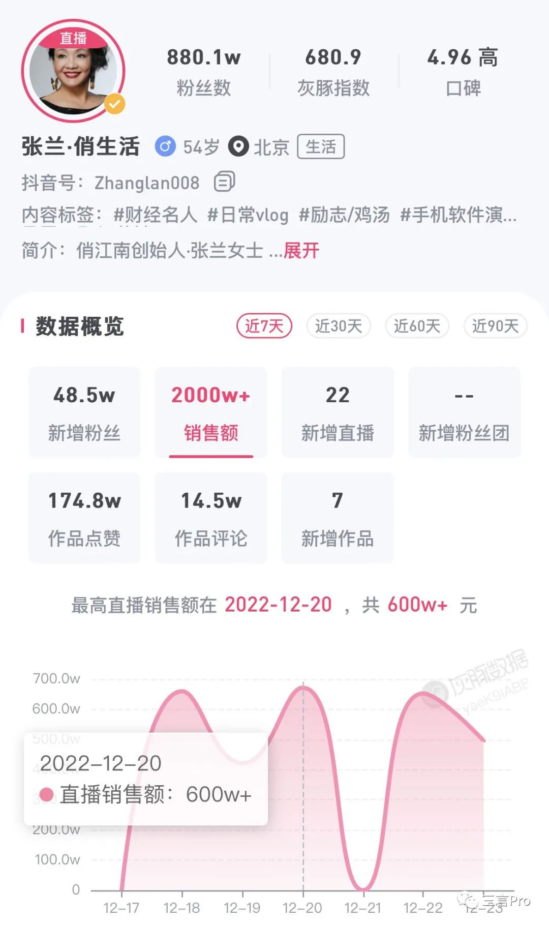 種種跡象表明,張蘭的直播已經趨於穩定化,每天基本都有幾百萬的銷售額。
