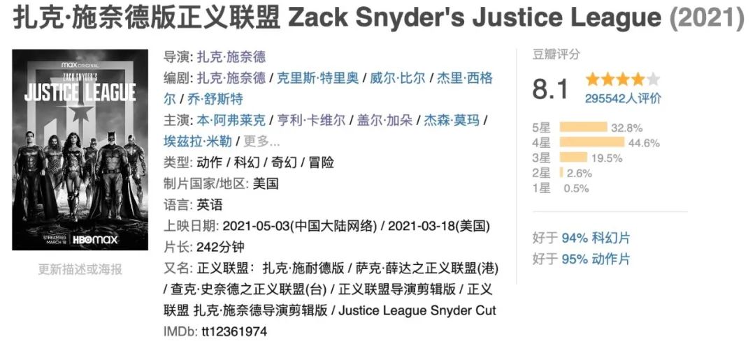 IMDB評分8.0,爆米花新鮮度94%,豆瓣8.1。