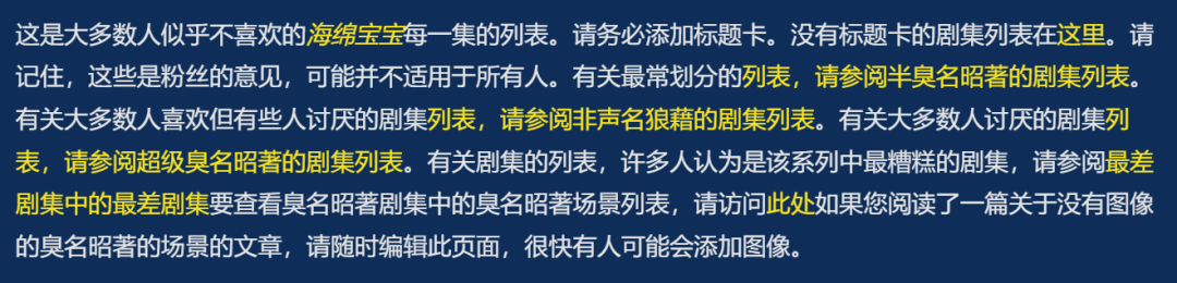 實際上在海外粉絲網站,有關獵奇的討論雖然同樣存在,卻與國內大相徑庭。國內粉絲通常會苛責第10季往後的糟糕劇集,而海外粉絲則將第6季至第9季命名為“黑暗時代”,並將其中的大量集數冠以“臭名昭著”的罵名。