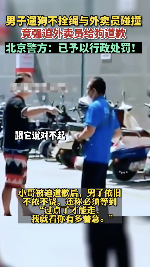 有男子遛狗不栓繩,還強制要求碰到狗的外賣小哥給狗道歉。
