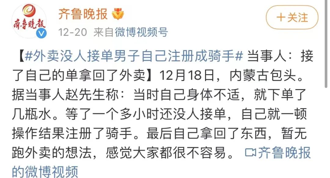 等幾小時無人接單,遇上有些急性子的,直接上手註冊成騎手,拿回了自己的外賣。