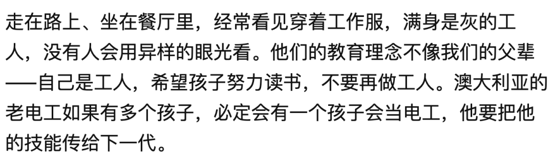 他們的教育理念也不像我們的父輩,自己是工人就一定要有個孩子當電工,把自己的技能傳給下一代。”