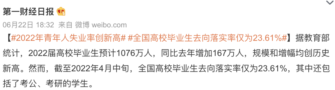但算上考研和考公的人,4月份他們中只有23.61%去向已經落實,青年人失業率創新高。