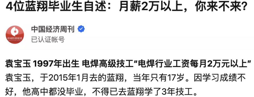 學習不好、高中沒畢業,去藍翔學3年技工,卻能比曾經的同學更快走上了人生巔峯。