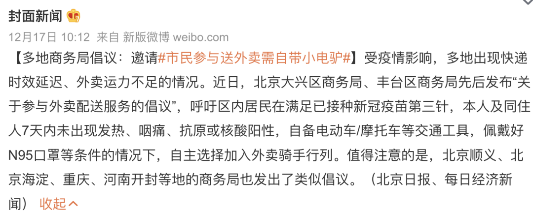 各地缺人缺到,都開始號召居民當快遞小哥和騎手了——