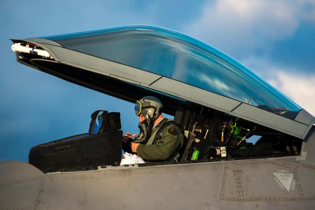 不過有意思的是,殲-20似乎並沒有取消傳統的拋蓋彈射結構,在座艙蓋前方可以看到兩根白色的管子,與F-22的拋蓋火箭形狀和位置幾乎完全一致。採用這種“雙保險”設計,能夠滿足更加多樣的戰場環境,例如戰機降落後座艙蓋卡住打不開,就可以直接啓動拋蓋火箭,免得把艙蓋炸碎在機場上了。