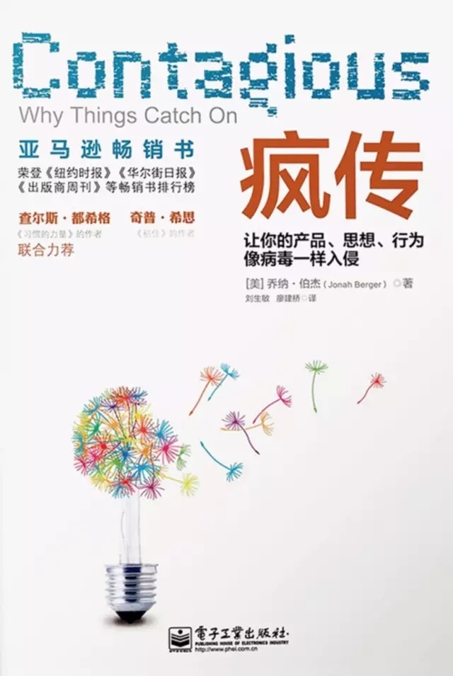 沃頓商學院的教授喬納·伯傑,曾出版了一本名為《瘋傳》的著作,主要討論某些產品或思想能夠流行的原因,在不少營銷領域非常知名,相信不少朋友都曾翻閲過。