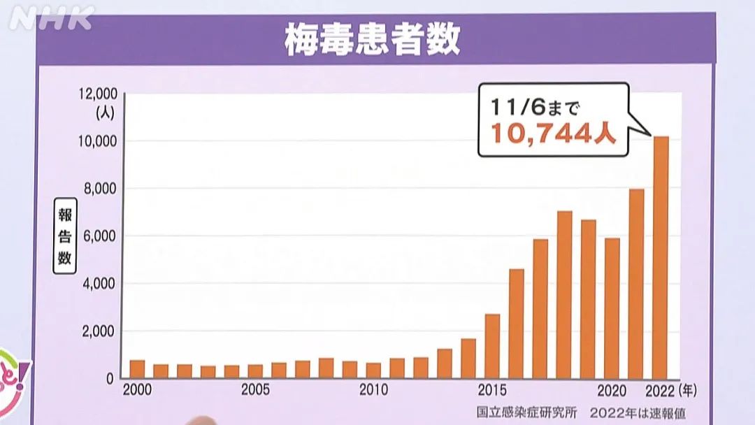 前段時間,日本國立感染研究所宣佈,今年日本梅毒的感染人數已經達到10744人。