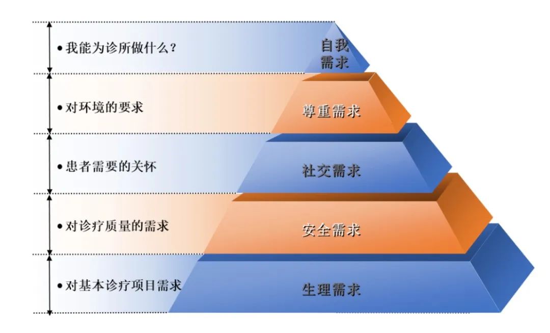 根據“馬斯洛需求理論”,醫療機構可以將診療服務分為五個層級,洞察並滿足客户不同層級的就醫心理,並主動採取措施提供有針對性的服務,就可能提升患者滿意度,營造良好的口碑與品牌效應。