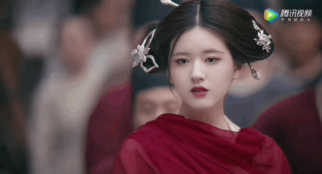 三郡主一襲紅裝,兩縷劉海,紅唇微張,雙眼微閉,想要營造迷離感,卻扎兩團孩童髮髻,還別兩朵花。