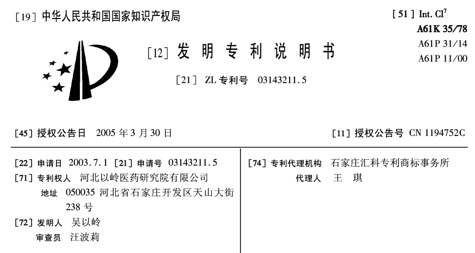 而且更有意思的是,以嶺藥業還把連花清瘟的專利號發出來了,其實連花清瘟的專利早在2004年就公開了,上面關於連花清瘟用了哪幾味藥、分別含量是多少、製備過程是如何的,都寫得一清二楚,壓根不怕你知道。
