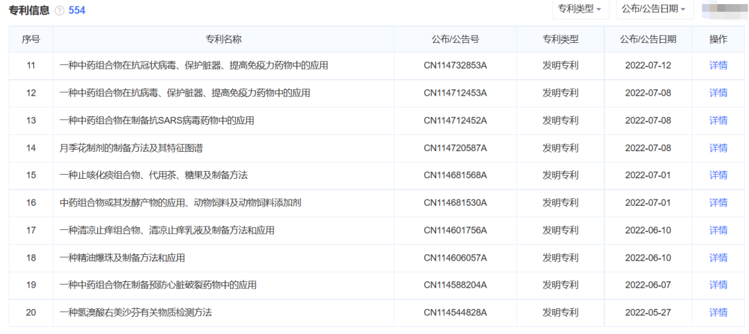 其次,雖然連花清瘟最早的專利是在2004年公佈的,按理來説到了2024年就到期了,但實際上藥企可以通過對同種藥不斷進行工藝創新、延伸開發,從而不斷申請新專利來延長保護期,目前連花清瘟的專利保護期已經到了2041年。