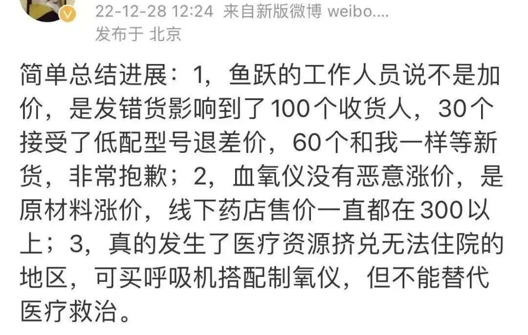 到了今天中午的時候,有魚躍的工作人員聯繫了當事人表示:召回貨物,不是因為價格,是因為倉庫發錯貨了。
