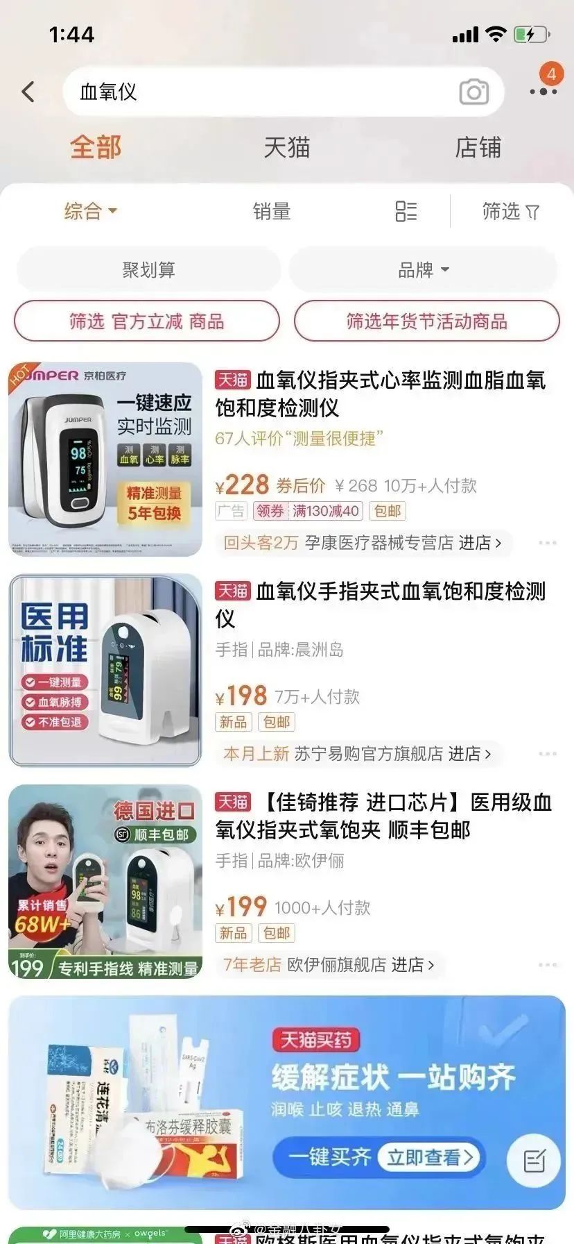 有網友發現,魚躍的同款血氧儀,去年88購物節在官方旗艦店裏購買,實際是94元到手,最近竟然漲到了299元!