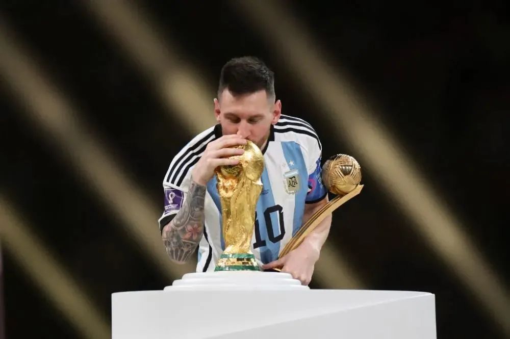 **至於梅西奪冠的那一刻,毫無疑問,那是人類星星閃耀的那一刻。**關於他的切片,可以組成無數個經典的故事模型:從侏儒症到球王的勵志;35歲中年危機的擊碎;青梅竹馬的完美愛情……似乎每一個失意人,都能從他身上獲得力量。