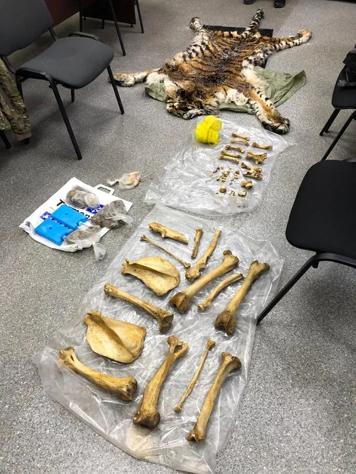 2020年,俄羅斯逮捕了兩個獵殺東北虎的偷獵者,繳獲了虎皮和虎骨 ©FSB Primorye