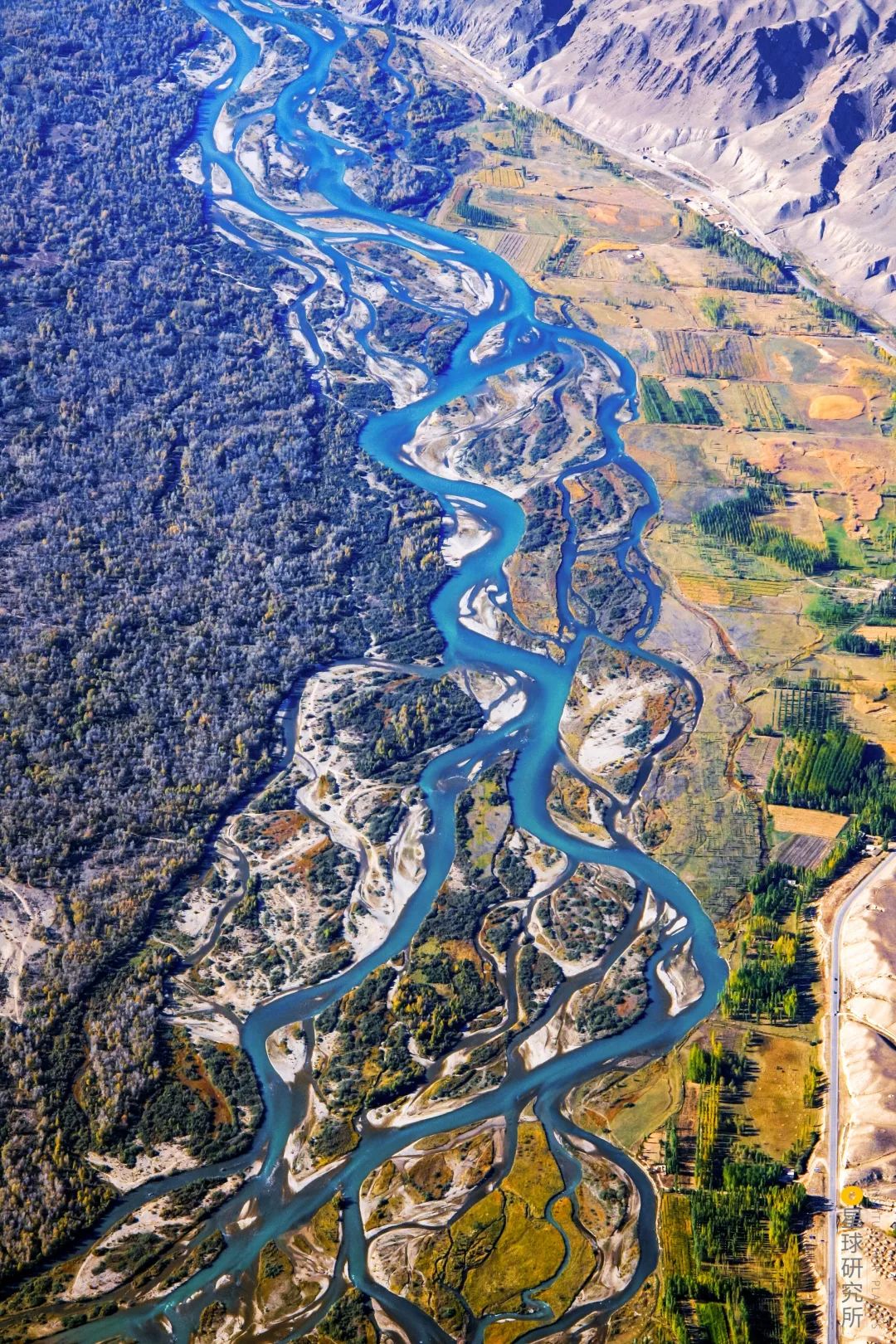 在廣袤河灘上蜿蜒迴旋