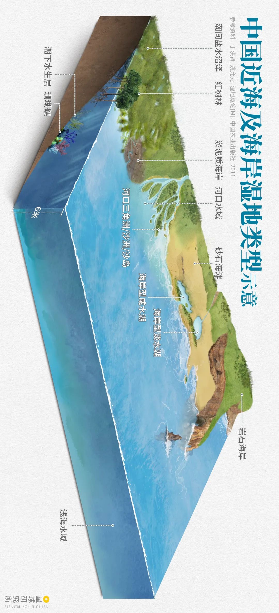 (請橫屏觀看,濕地定義及功能示意,《濕地公約》中將陸地間所有水域及海岸地區定義為濕地,該體系方便管理但過於龐雜,本文所指的濕地主要為陸地及深水水域的過渡地帶,製圖@王天怡/星球研究所)