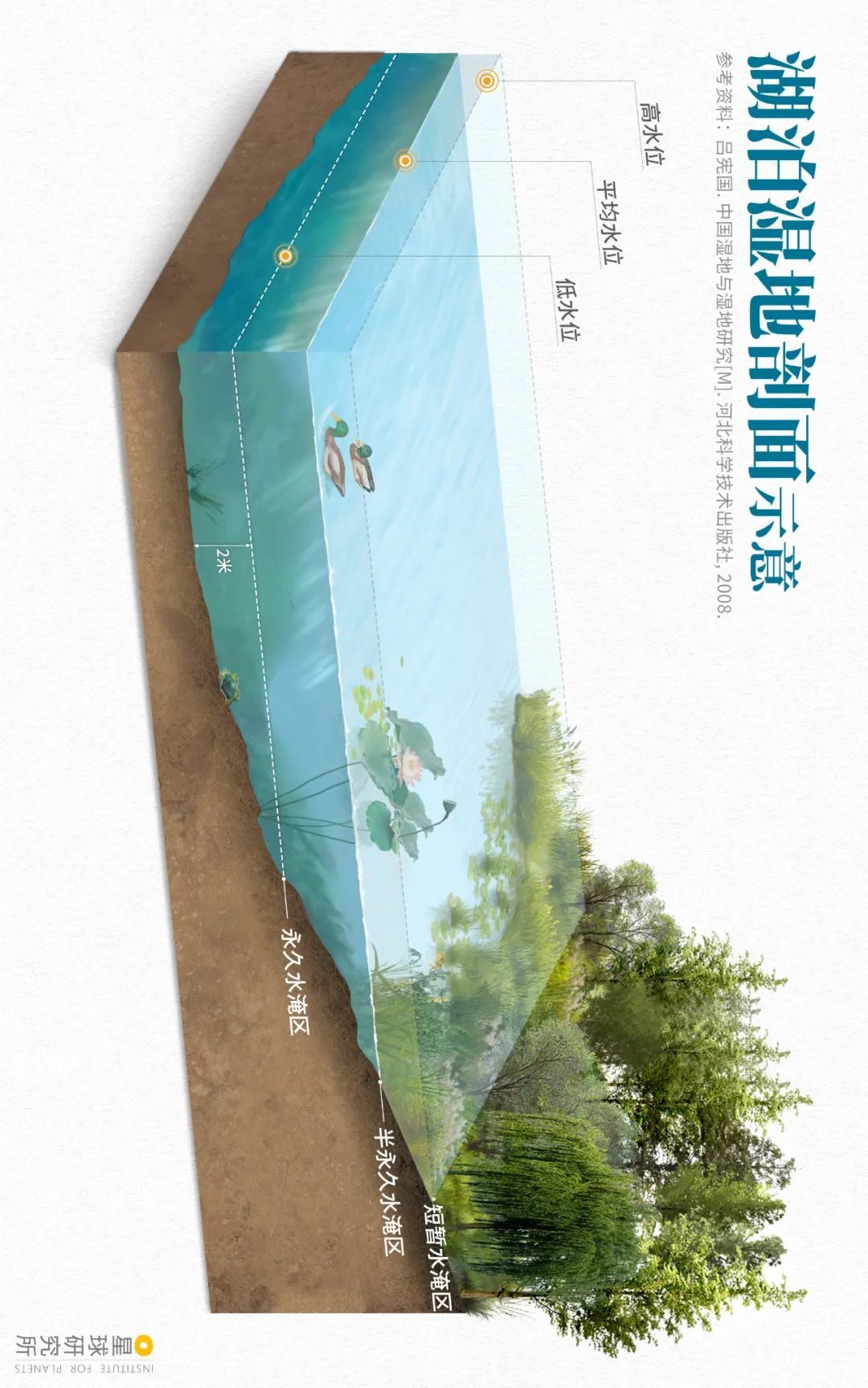 (請橫屏觀看,湖泊濕地示意圖,代表枯水期水深不足2米的湖濱地帶,製圖@王天怡/星球研究所)