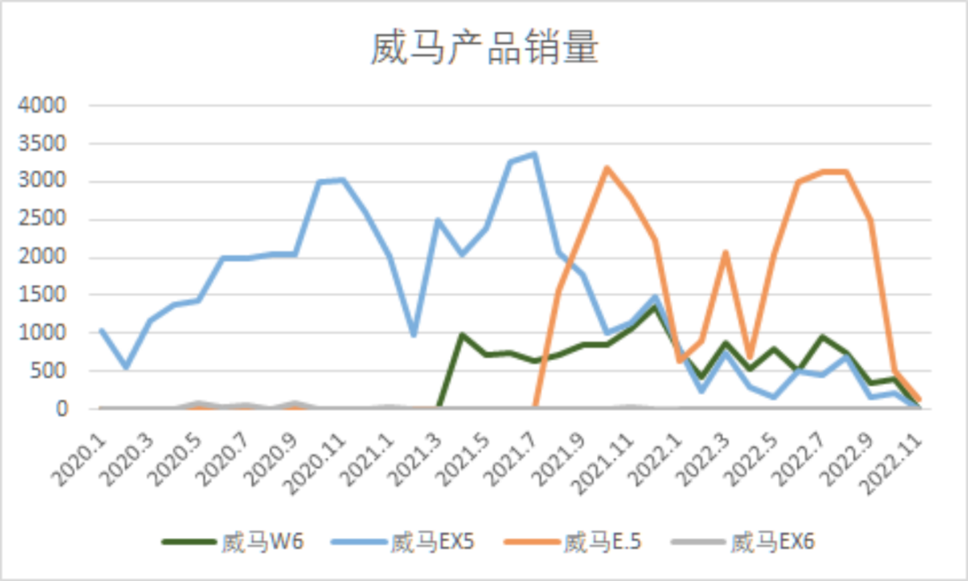 EX5銷量的下行已然出現不可逆的趨勢;EX6、W6的銷量也已經側面證明了產品本身的失敗。