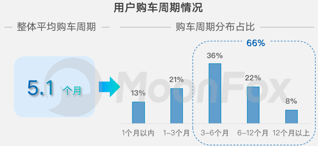 遺憾的是,由於網絡觸點的分散性與多樣性,汽車用户在購車決策過程中考慮的因素與條件也越來越多;公開調研信息顯示,用户平均的決策週期為5.1個月,其中有30%的用户決策週期在6個月以上。