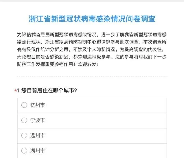 “為評估我省居民新冠病毒感染情況,進一步瞭解我省新冠病毒感染疫情流行現狀”,浙江省疾控中心12月29日啓動該省居民新冠病毒感染情況調查。