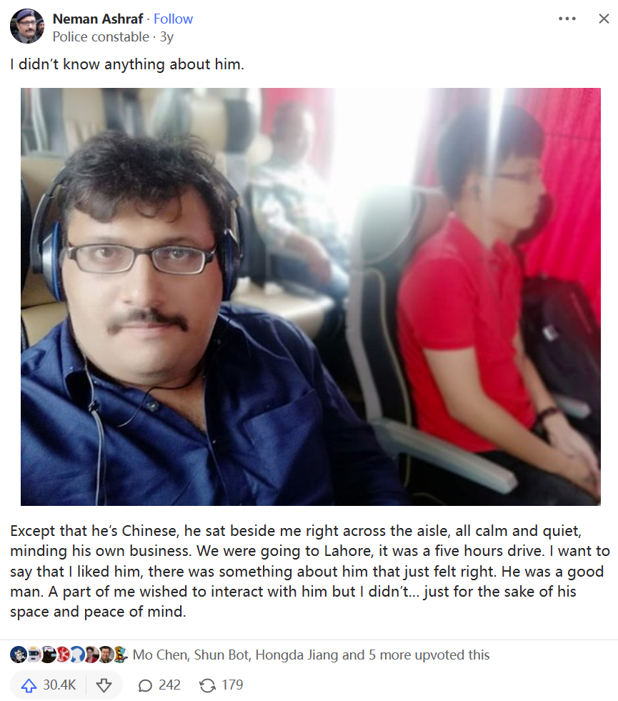 巴基斯坦網民 Neman Ashraf 的回答獲得了30000+超高贊,他這樣評價中國人: