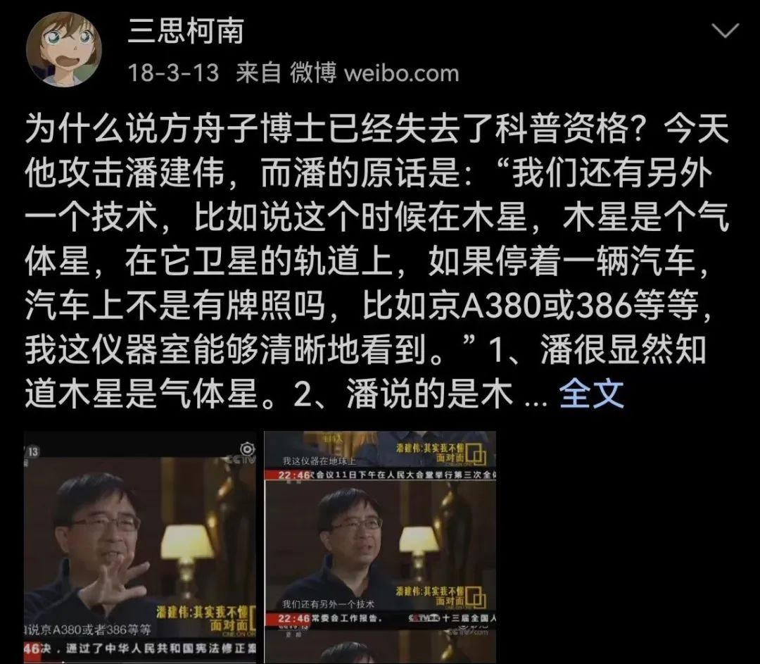 三思柯南曾經是方舟子的鐵桿粉絲,後來因為某事和方舟子鬧翻了,多次指出過方舟子在科普上犯的錯誤,並下結論:方舟子已經失去科普的資格。