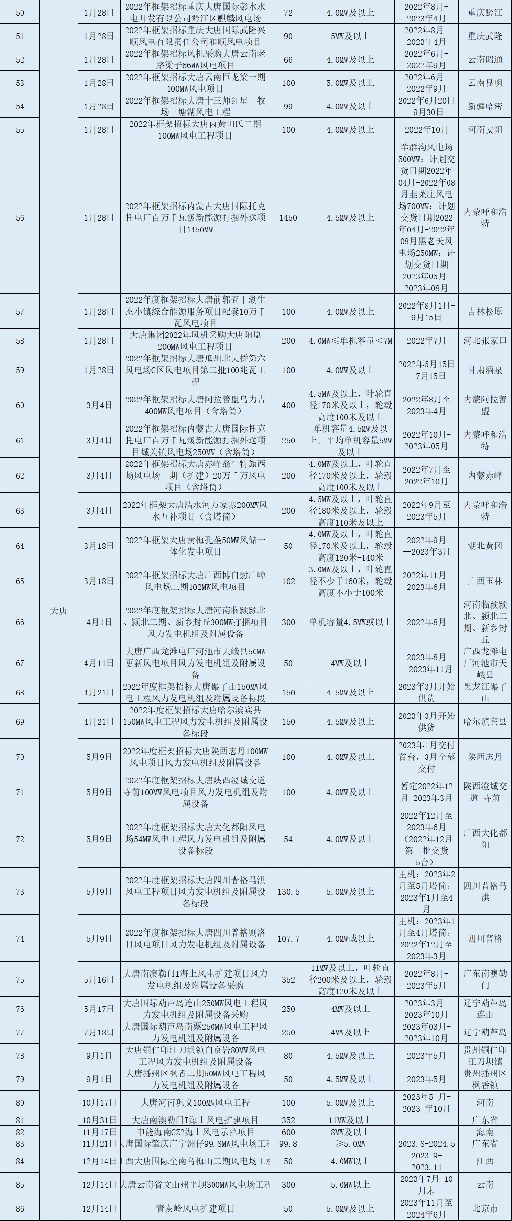 風芒能源根據公開信息不完全統計,2022年(截至12月29日),中國風電市場共計啓動469個項目累計88.739GW(不含框採)風機招標。446個項目合計86.898GW完成中標(含國際市場)。市場火爆情況遠超去年(總招標60GW左右)。