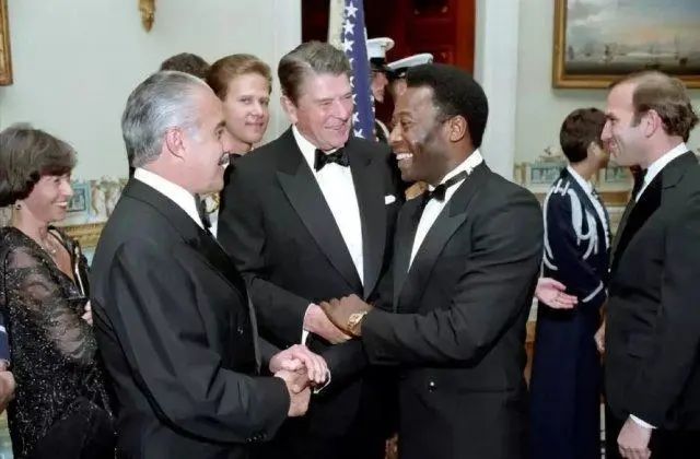美國總統里根會見貝利時,掩飾不住對他的欣賞