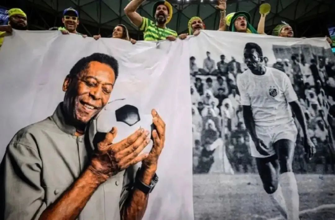 在本次世界盃的小組賽上,巴西隊戰勝瑞士隊獲得小組第一,現場觀看比賽的巴西球迷展開巨大橫幅,致敬貝利。