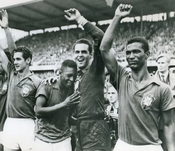 貝利在這次世界盃表現突出,共計打入6球,上演了世界盃歷史上令人叫絕的“帽子戲法”,讓巴西首次捧起金盃。