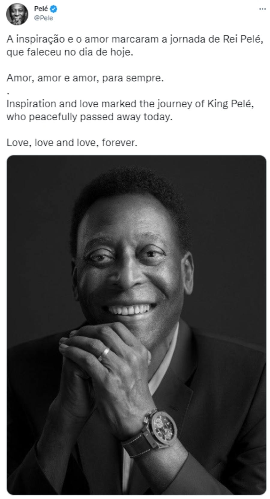 貝利官方推特賬號發佈訃告,證實貝利離世