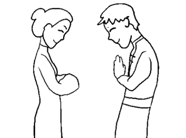 就像我們説Namaste(雙手合十)一樣,中國的傳統問候方式包括低頭和手掌合十。
