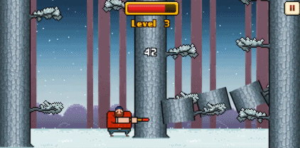 《 瘋狂伐木工 》是一款 2014 年 iOS 平台的像素風格遊戲,玩法很簡單,就是不停砍樹並且避免被掉下來的樹枝砸死就行。