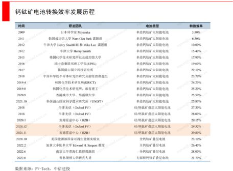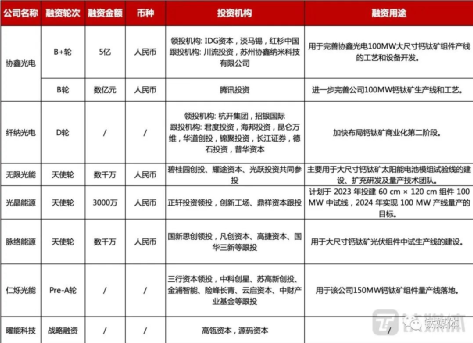 根據不完全統計,2021~2022年,鈣鈦礦領域投資額已經接近100億元。