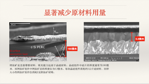 所以鈣鈦礦的材料是有“配方”的,通過不斷改進可以提升電池的性能,而晶硅材料本身卻是幾十年沒變的。