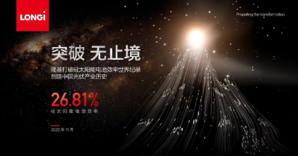 2022年底,隆基把這一紀錄提高到26.81%,提高了0.11個百分點,這是中國人歷史上第一次創造的單結晶硅電池效率世界紀錄,不分技術路線。