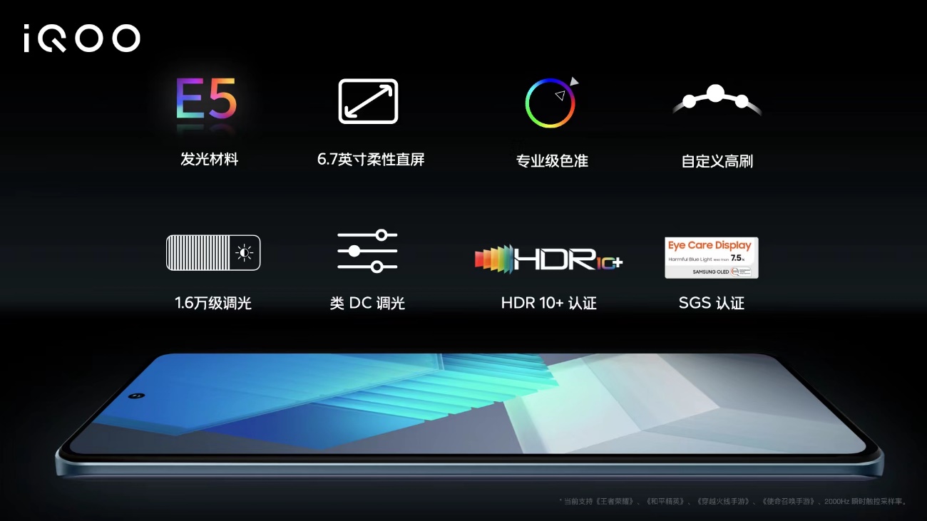 純平2D大直屏,加上高成本高素質的三星E5柔性材質,讓iQOO Neo7 競速版擁有了一塊值得五星好評的真正“遊戲好屏”。Neo7競速版的大直屏帶來更直觀的顯示效果,並能降低誤觸率,柔性材質直用也能帶來更好的色彩表現;在遊戲場景中,iQOO Neo7 競速版至高支持雙指360Hz觸控報點率和2000Hz瞬時觸控採樣率,精準遊戲操控,一擊即中,是喜愛玩遊戲的用户不可或缺的必備“觸控神器”。
