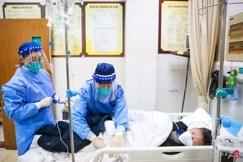 急診科護士長楊華娟介紹,醫院地處青浦老城區,病患年齡結構比較特殊,尤其是老年人比較多。急診科在其他科室的增援下,目前有16名護士和近10名醫生分三班上崗。“除了內科排長隊,搶救室裏重症病人尤其是氧飽和度下降快的老人特別多,護理方面的工作負荷很是厲害。”