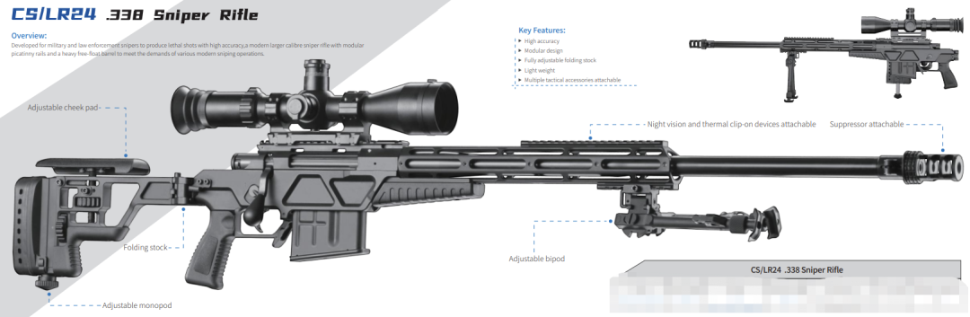 還有以前我們所説的CS/LR35的8.6毫米口徑版本,也就是20式槍族中的QBU202型8.6毫米狙擊步槍,此次也在出口產品列表之中,但出口型號改稱CS/LR24狙擊步槍。