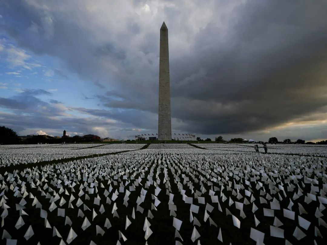 ▲2021年9月,美國華盛頓國家廣場上曾豎起數十萬面白色旗幟,以紀念新冠病亡者。截至2022年12月,美國新冠死亡人數已超過110萬。